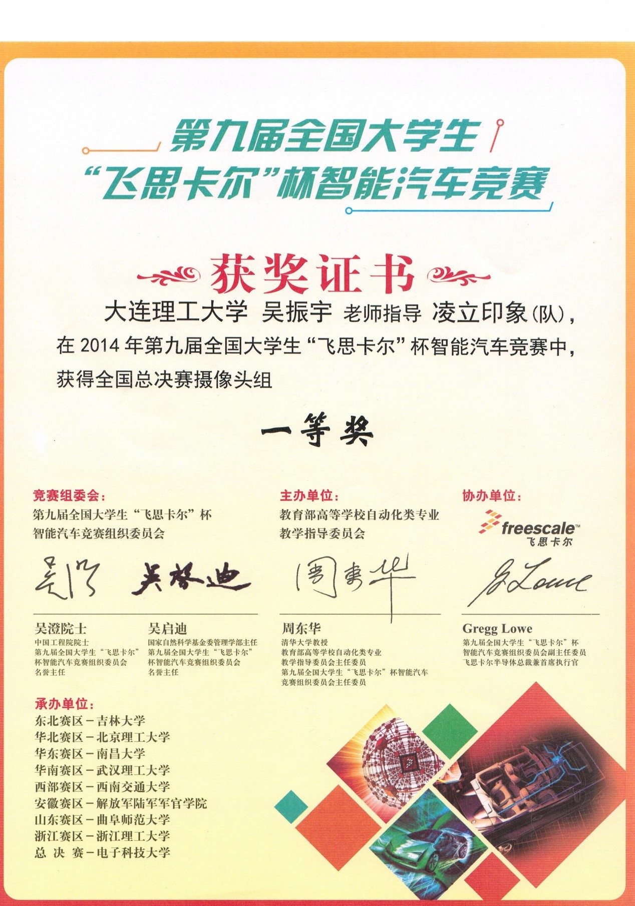 2014年第九届“飞思卡尔杯”全国大学生智能车竞赛全国一等奖1项,赛区一等奖2项,赛区二等奖4项;