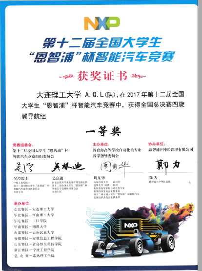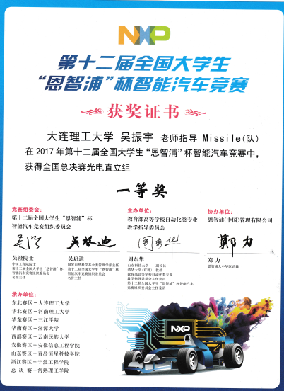 2017年第十二届“恩智浦杯”全国大学生智能车竞赛全国一等奖2项,二等奖1项,赛区一等奖5项,二等奖1项