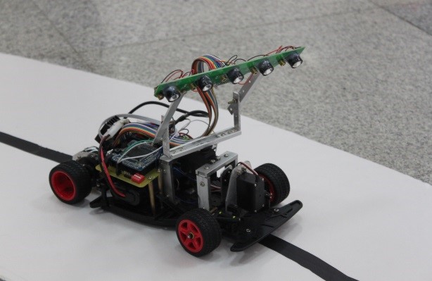 光电组:光电型智能车以光电传感器采集赛道上少数离散点反射亮度进行路径检测。微控制器通过使用边沿检测算法计算赛道偏差,控制舵机打角来实现车模的姿态控制,采用速度传感器测量车速来实现速度的闭环控制。光电型智能车采集数据少,虽易于处理但前瞻性差,高速时对速度控制策略要求较高。